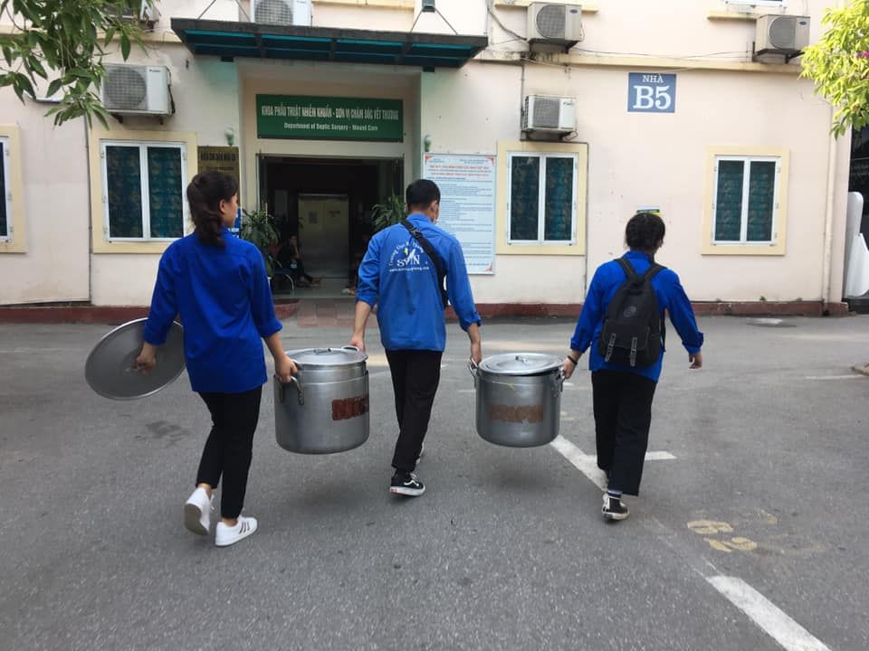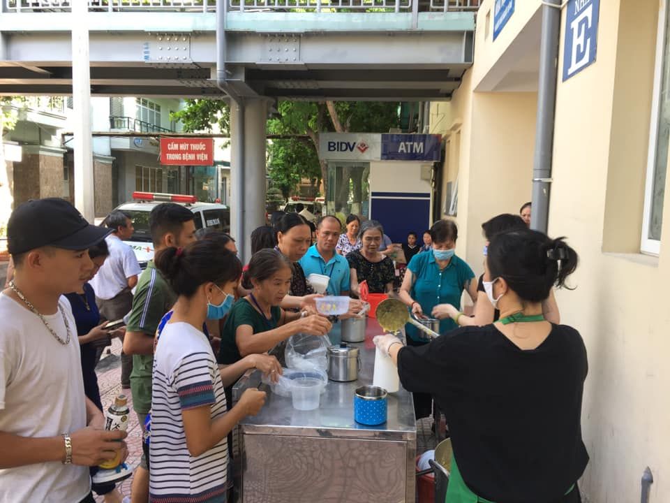 Cần 3-4 người, có 2-3 bạn đi các khoa phòng mời bệnh nhân xuống nhận cháo vì nhiều bệnh nhân không biết. Cả nhà lưu ý chi tiết nhỏ này với nhé.