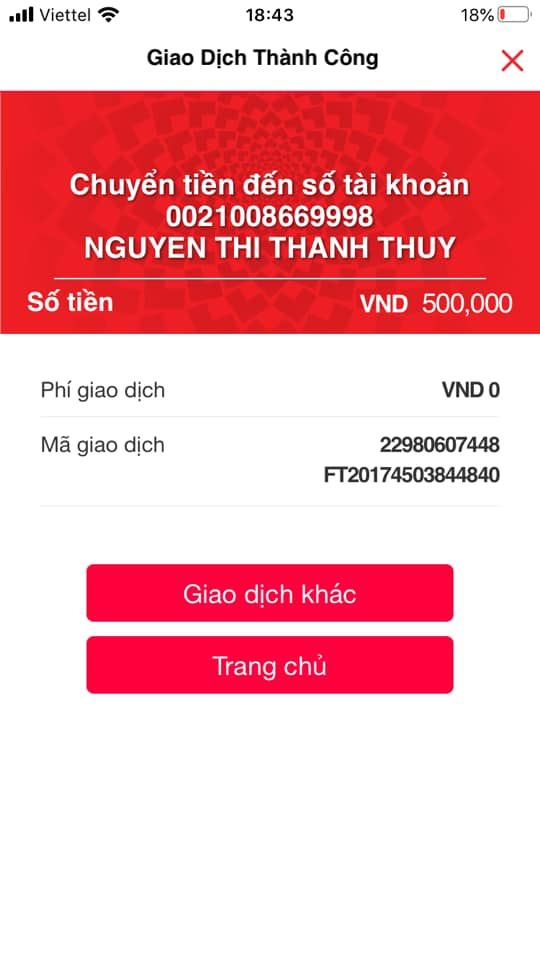 Bạn có thể chuyển tiền theo thông tin bên dưới cho thủ quỹ với nội dung " UH Nồi Cháo Hà Nội "