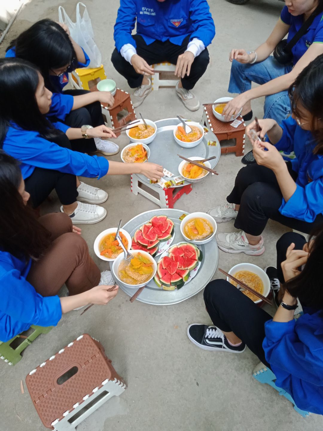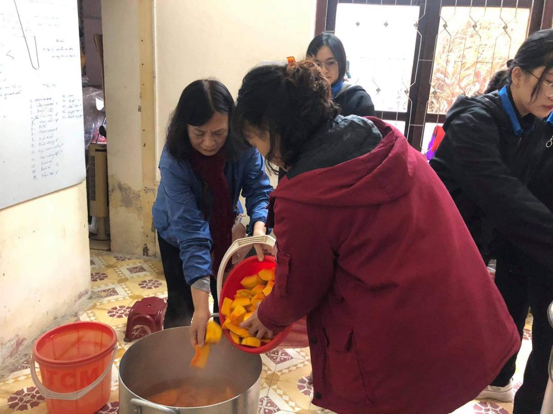 - Chủ nhật: Đội gà trống choai đến từ các bạn học sinh trường Vin tham gia nấu và phát rất đông nên buổi cháo hoàn thành rất sớm.