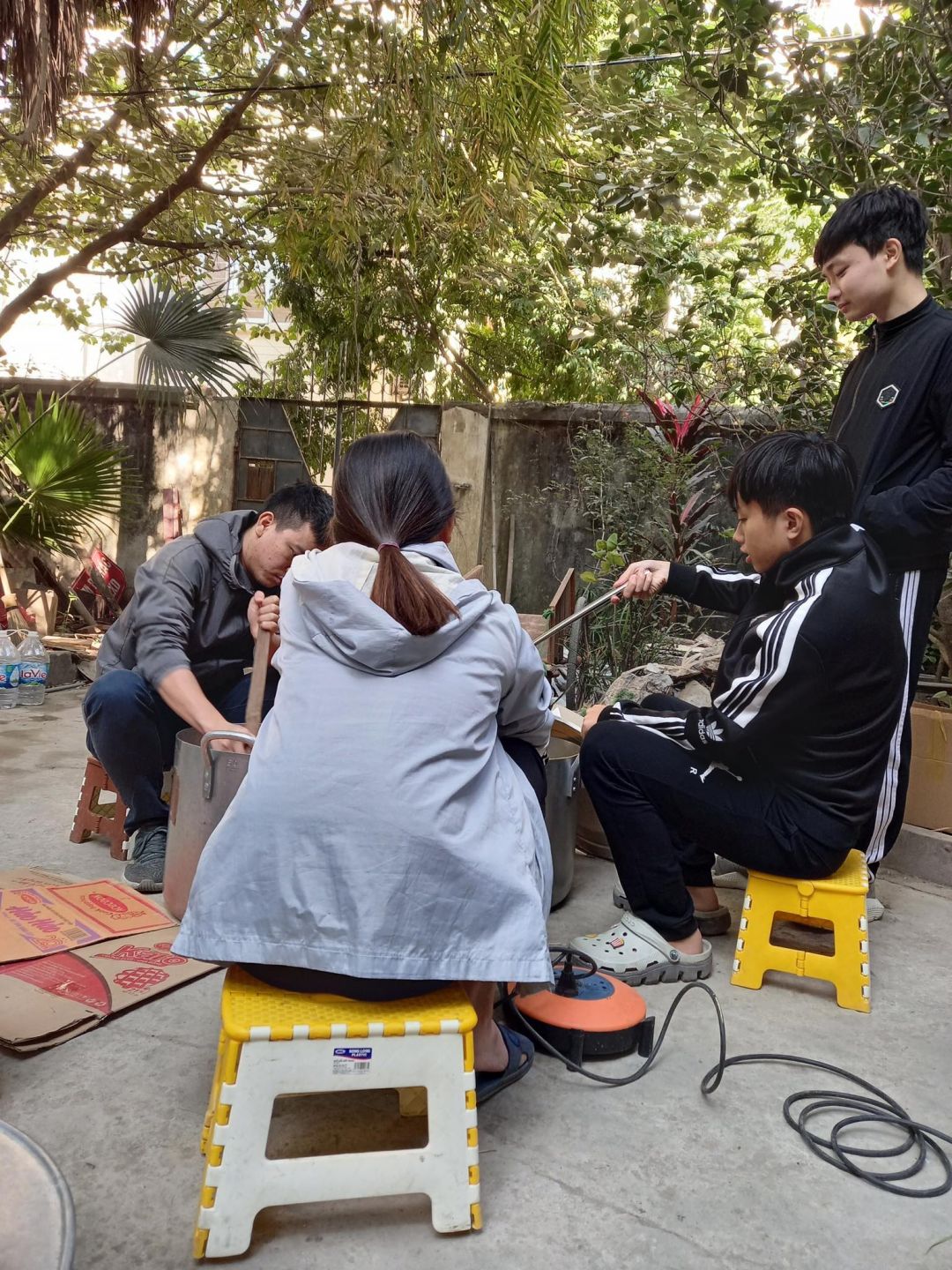 - Thứ 7: Thành viên nhí chăm chỉ đến nấu cháo và rửa xoong nồi sau khi xya nhân. Thế hệ tre tiếp theo của nồi cháo là đây