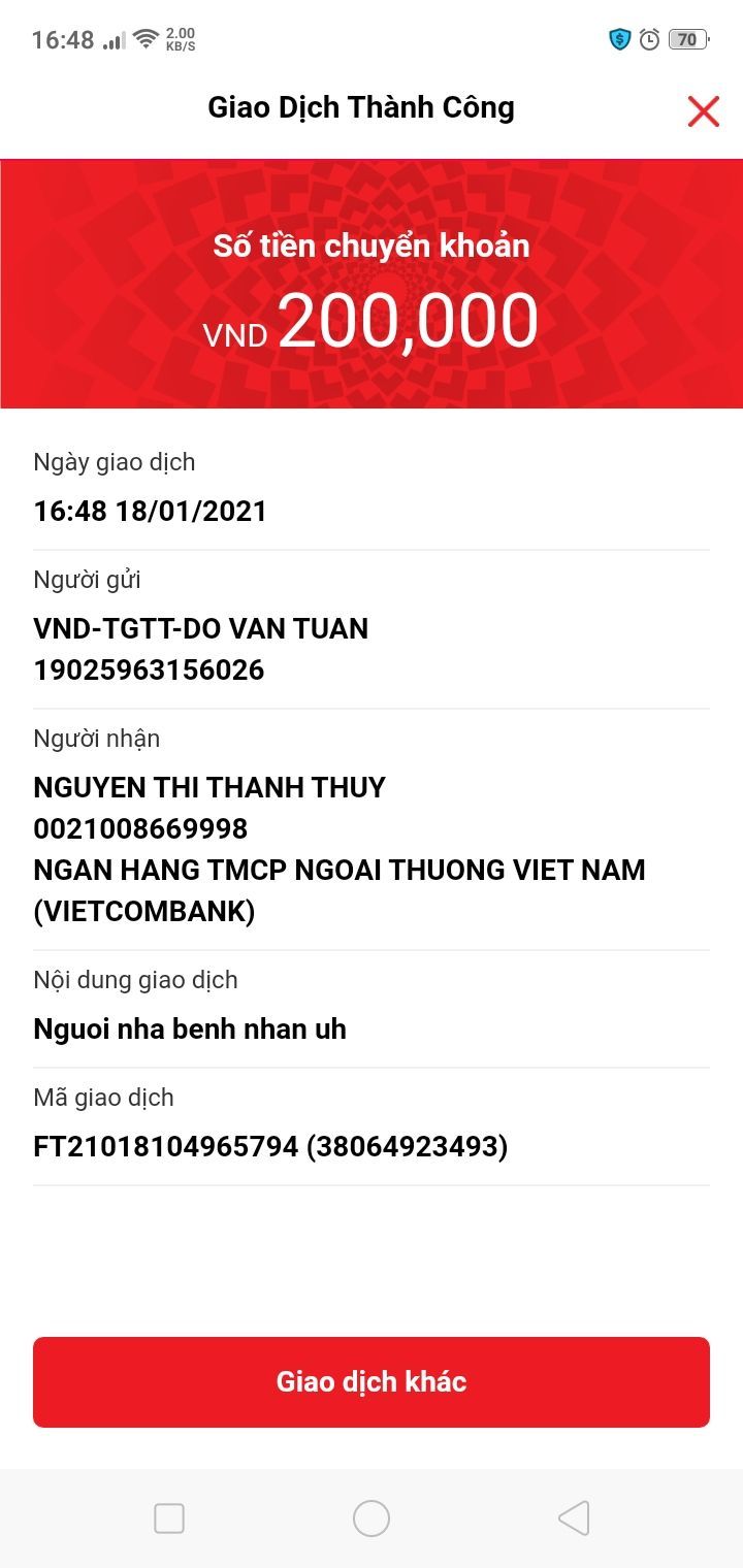 + Người nhà bệnh nhân ủng hộ 70k