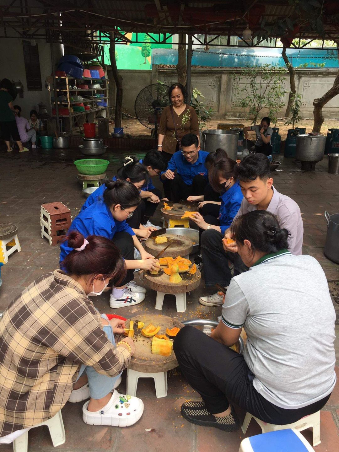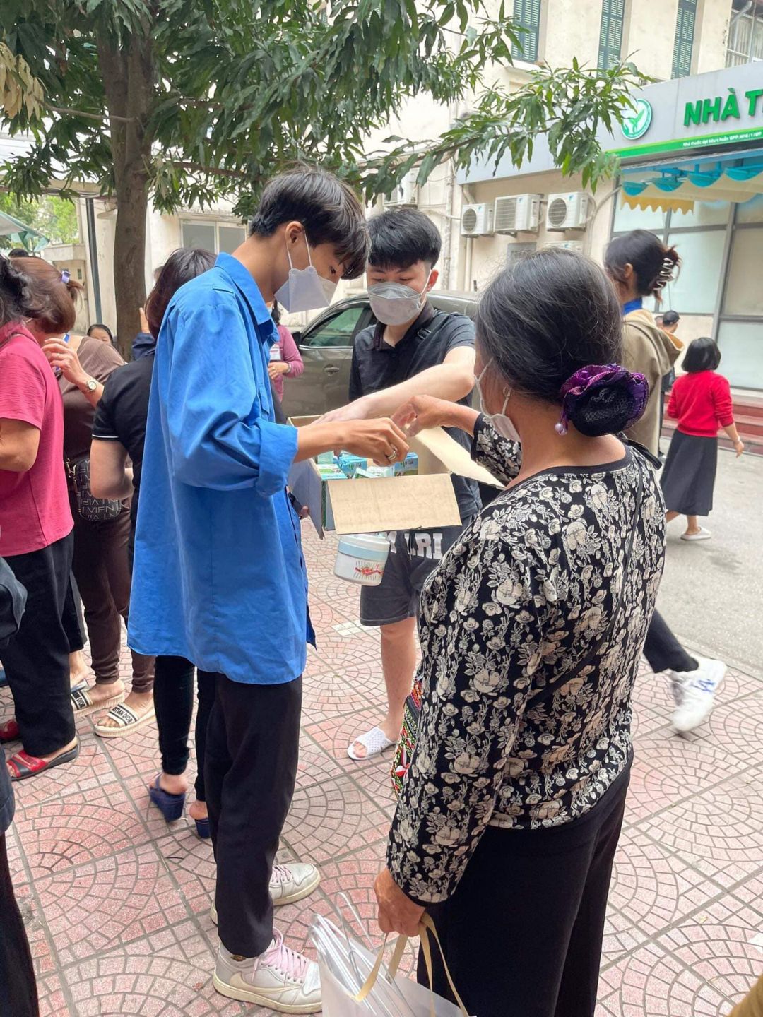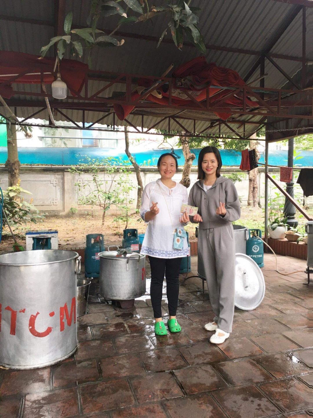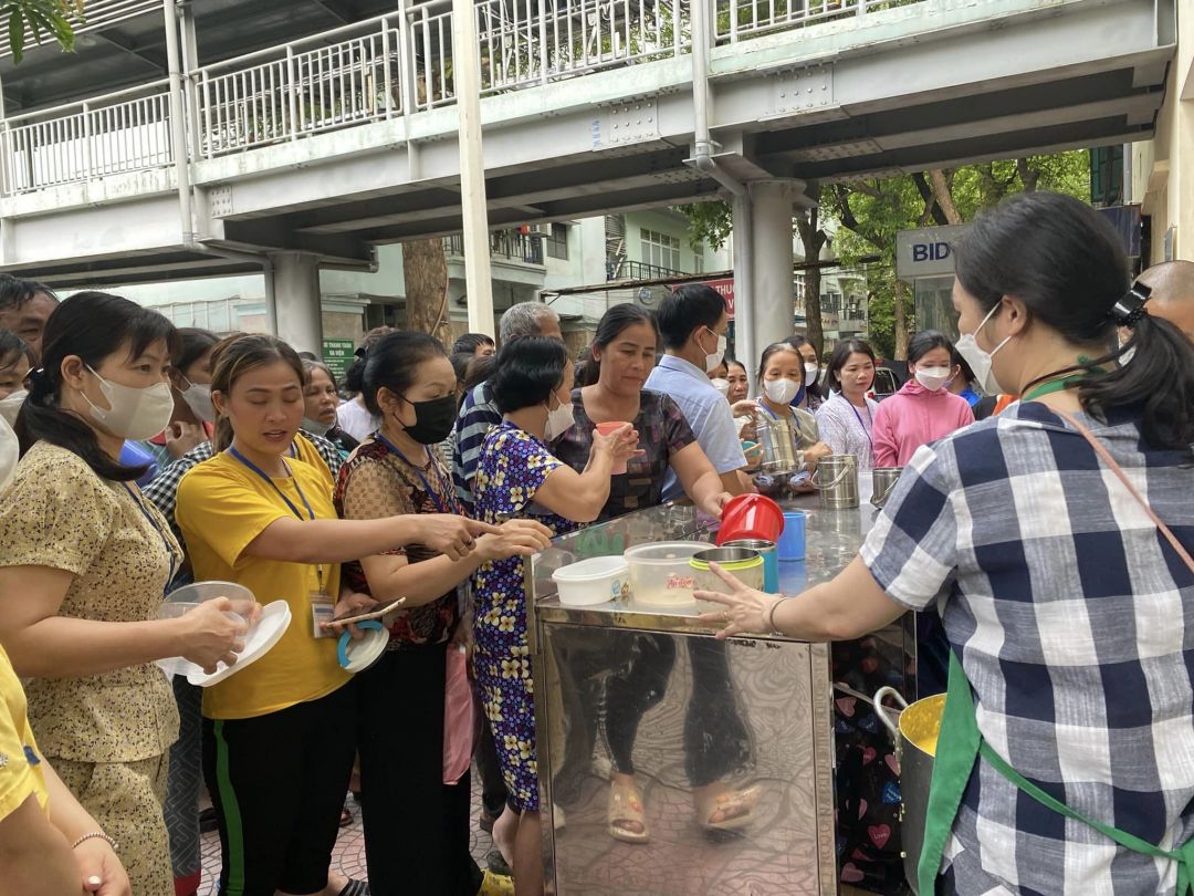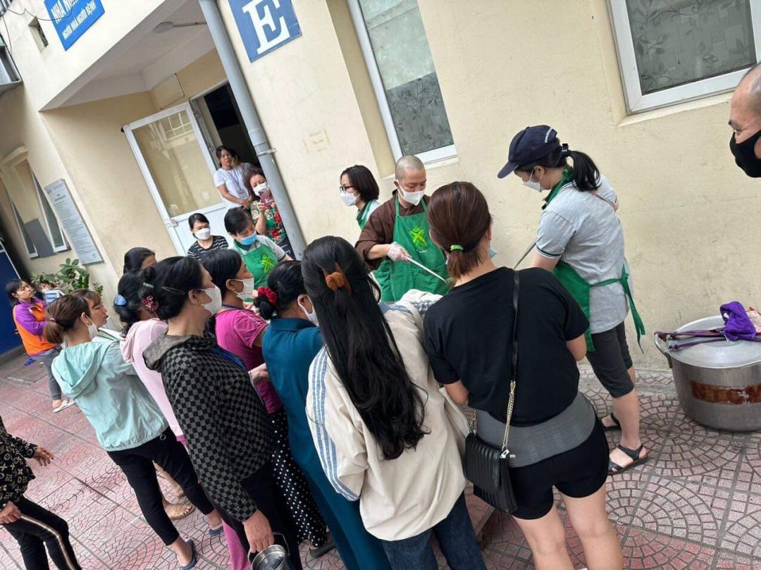 Tuần nào chị Ngoan leader thì tuần đó cháo đắt như tôm tươi. Các em sinh viên đại học Thăng Long nấu và phát cháo.