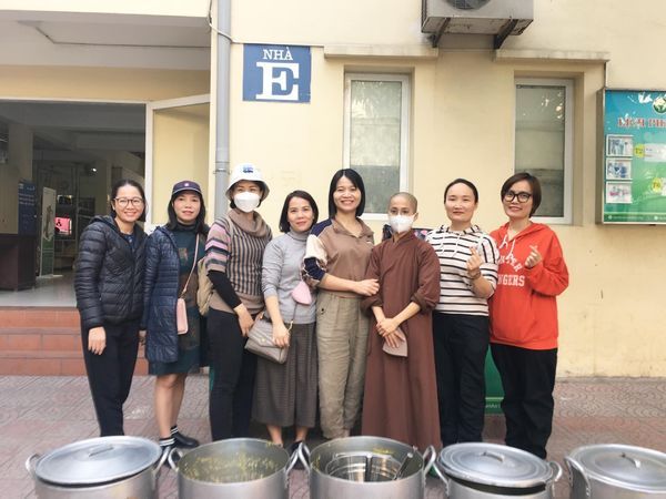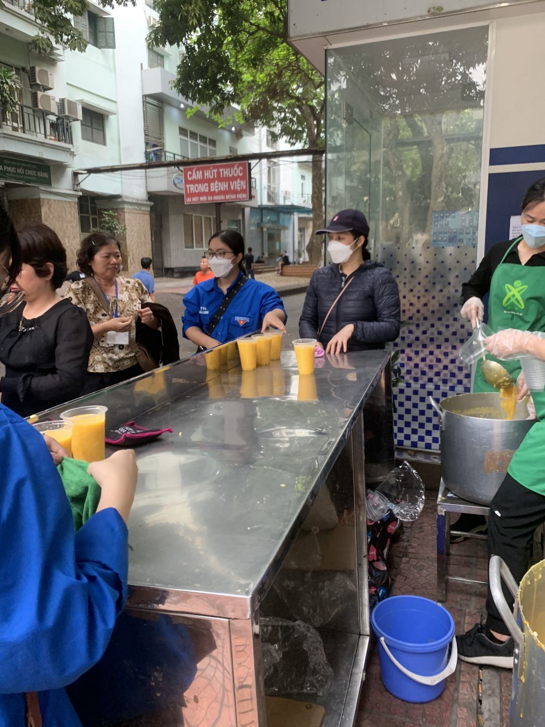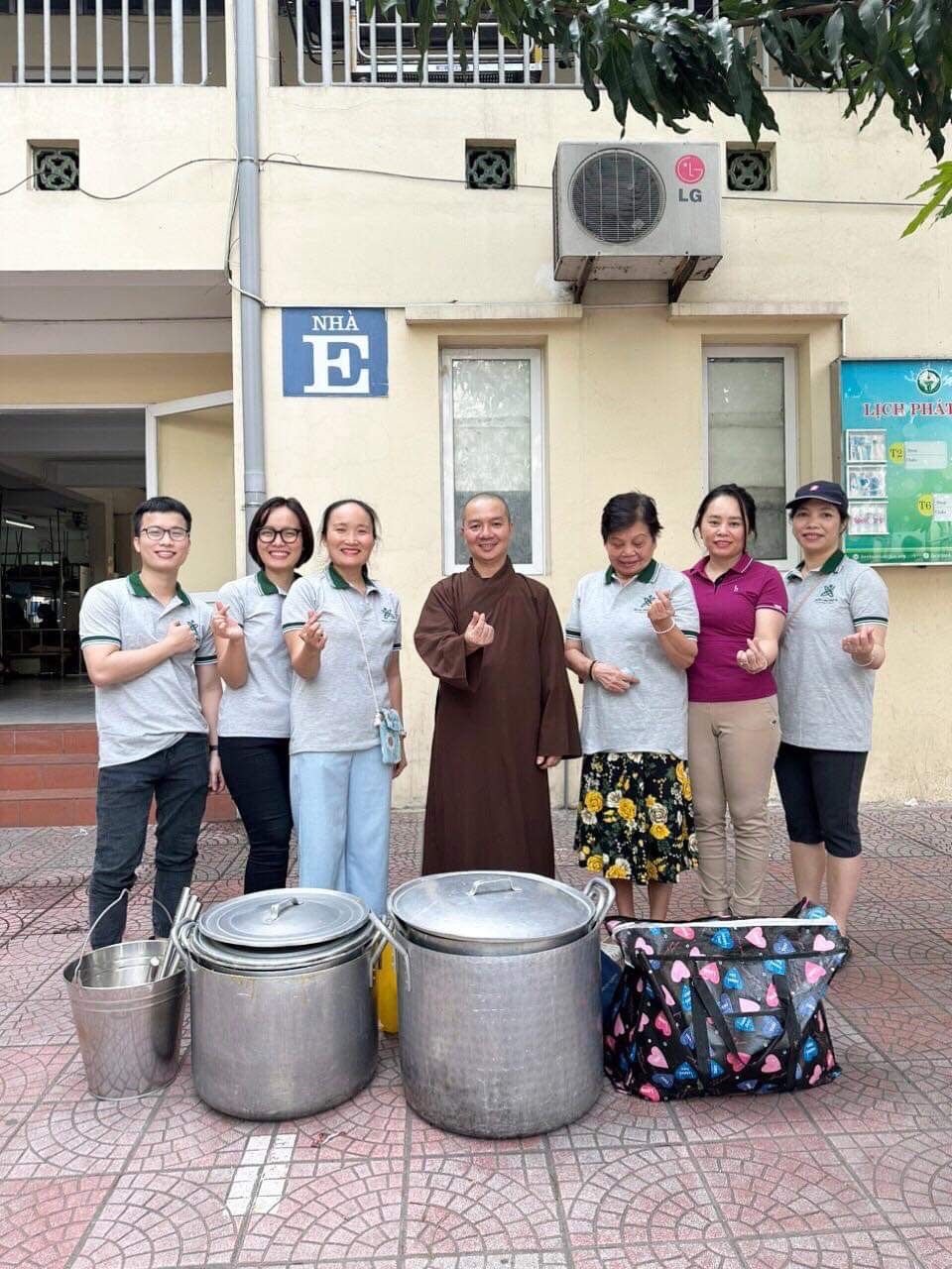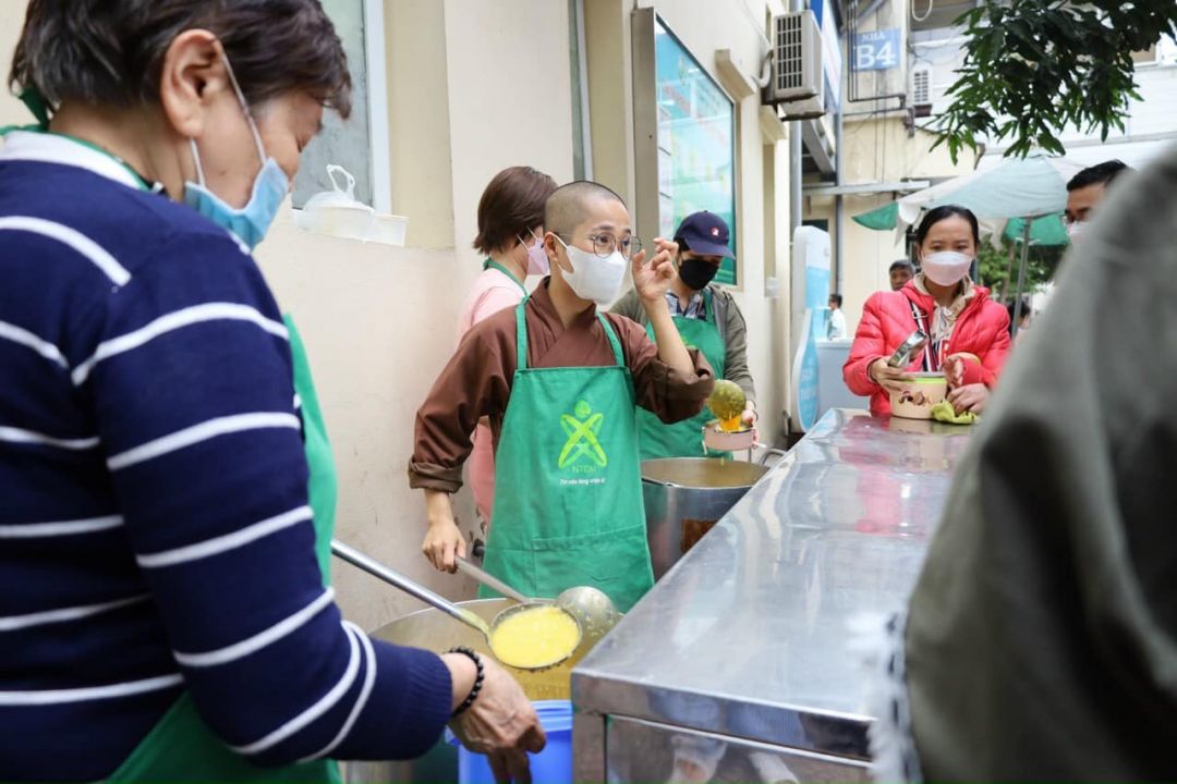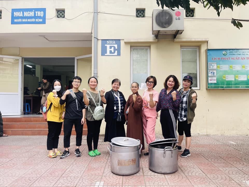 Tuần này có sư cô tham gia phát cháo tại bệnh viện. Leader có thêm trải nghiệm đi mời cháo tại các khoa của bệnh viện.