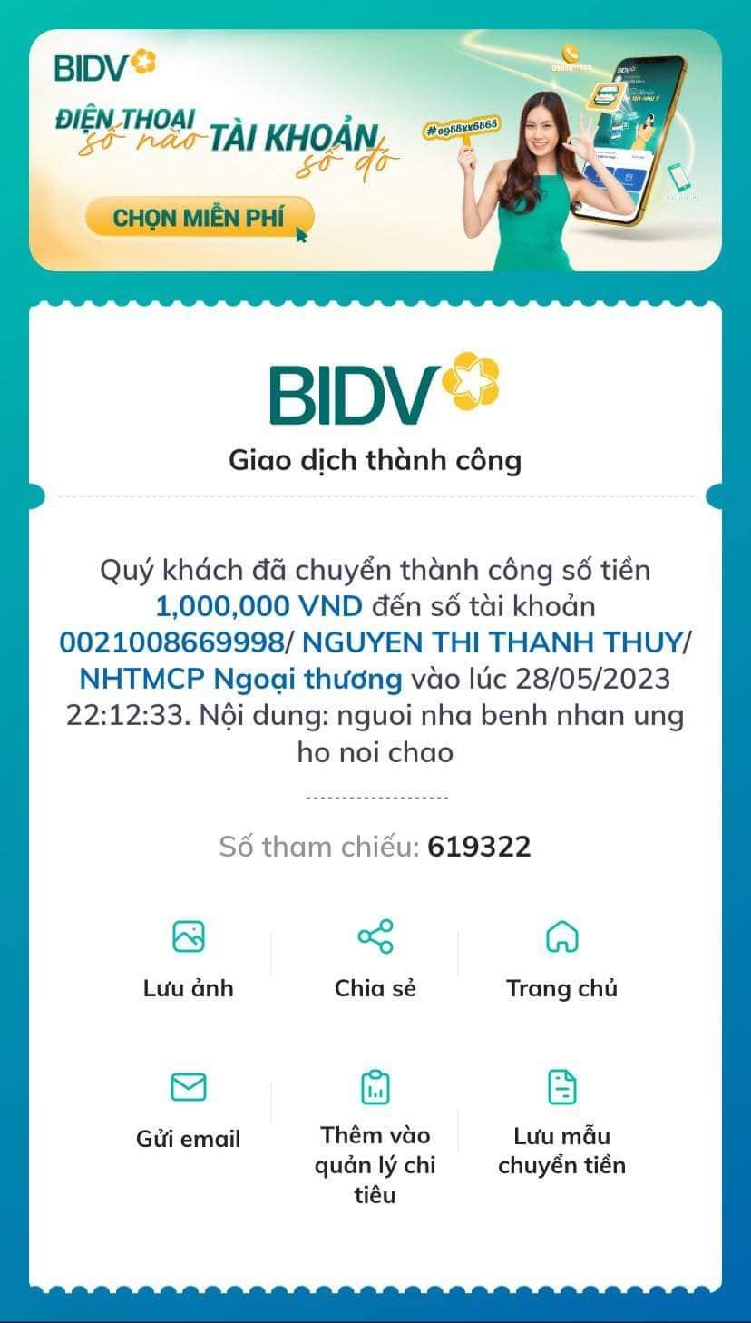 - Anh Vũ Hùng Tuấn ủng hộ 1.000.000đ