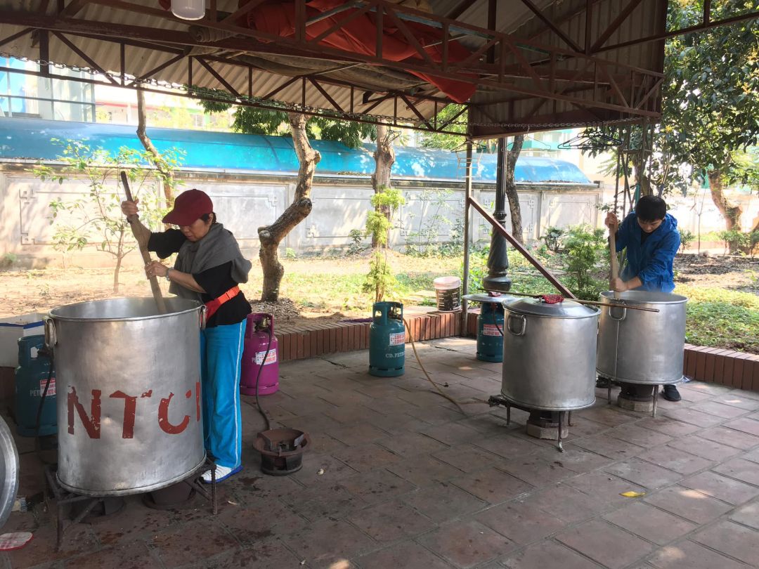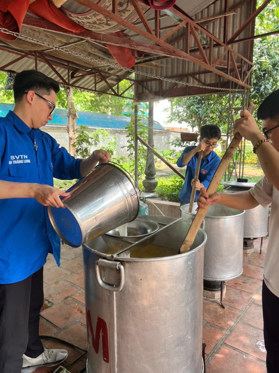 Tuần này xanh màu áo tình nguyện các em sinh viên trường Đại học Thăng Long nấu cháo và phát cháo.